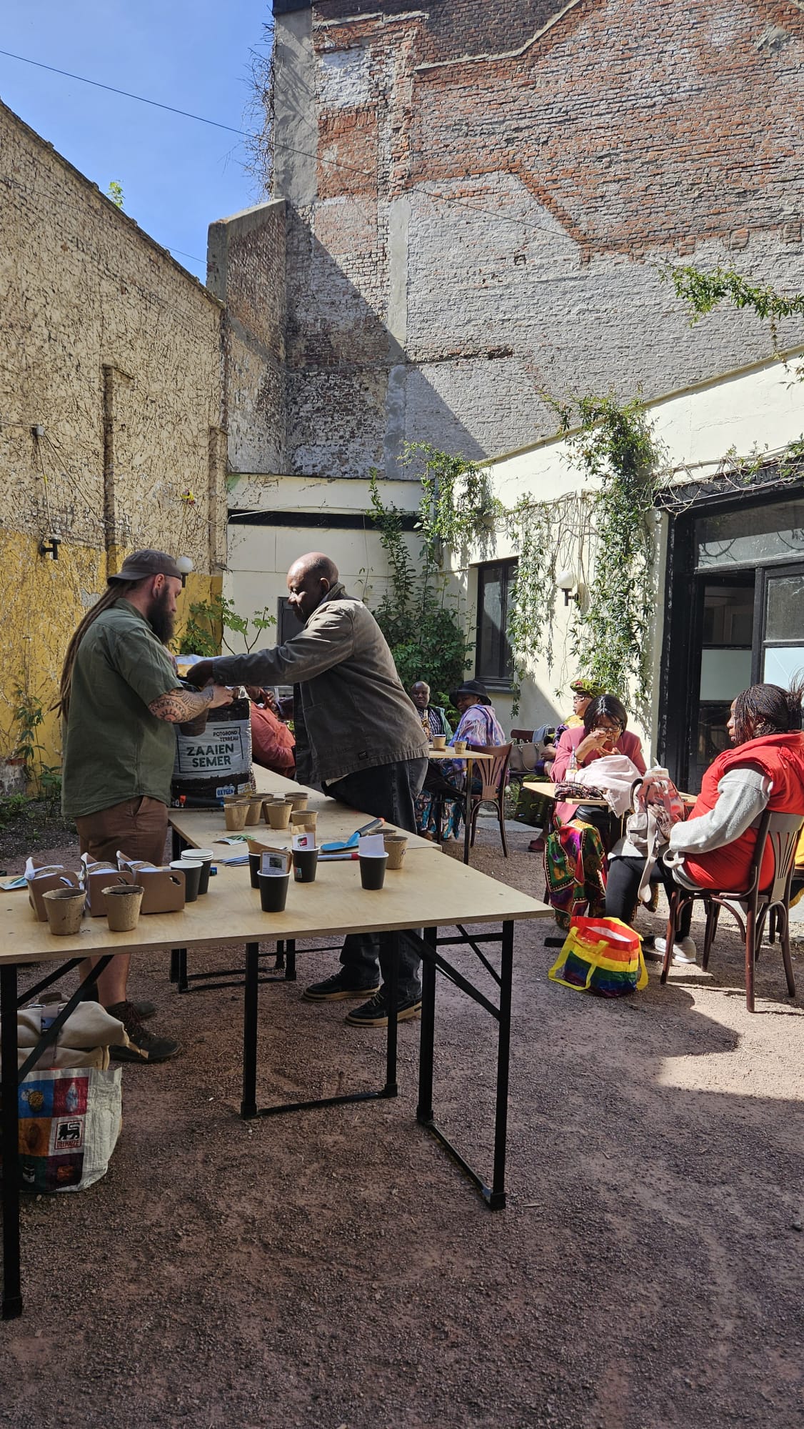 Bij het creatief atelier gingen heel wat deelnemers creatief aan de slag met kralen, parels en stof en namen een zelfgemaakt werkstuk mee naar huis. Bij de tuinworkshop leerden we alles over grondsoorten en zaden, en vertrok iedereen met een eigen gezaaid courgettepotje én een zakje zaden. Een dikke merci aan Stad Antwerpen voor de zaden! De kindertafel met spelletjes, kleurplaten en knutselmateriaal zorgde ervoor dat ook de allerkleinsten de hele namiddag goed bezig waren.